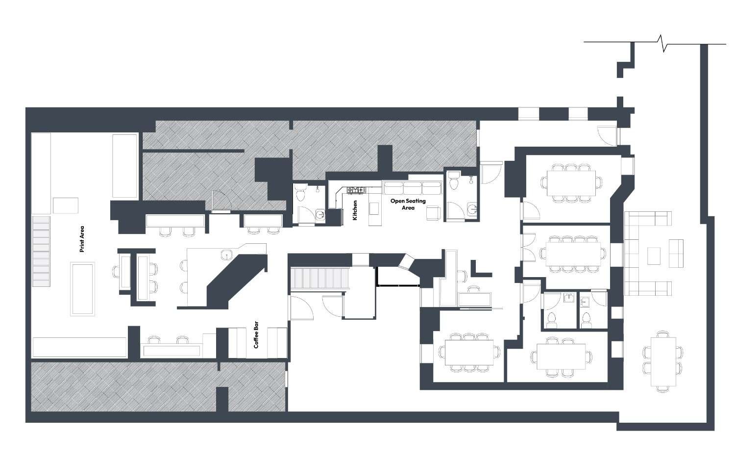 A commanding meeting space inspired by the permanence of classic architectural stone. Structured, grounded, and intentionally refined. Ideal for boardroom discussions, strategic presentations, and high-stakes conversations.