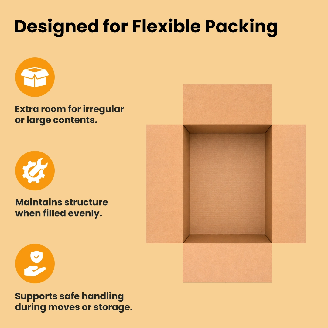 A wide, heavy-duty kraft box designed to protect large products with reliable corrugated strength, offering secure durability for storage, shipping, and handling while ensuring items remain well-protected throughout various demanding packaging applications and needs.